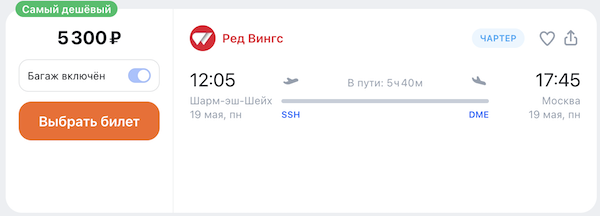 Горящие билеты на прямые чартерные рейсы из Москвы в Шарм-эш-Шейх 12.700 рублей туда-обратно.