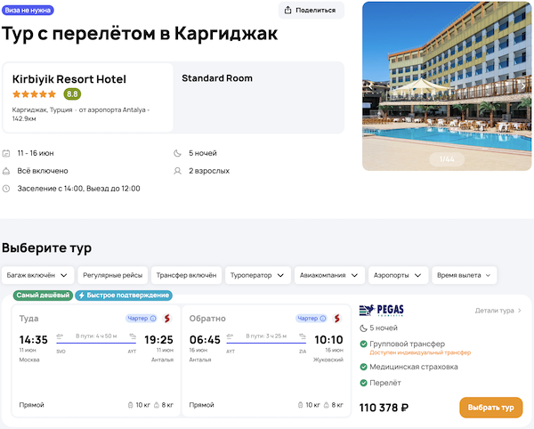 Kirbiyik Resort Hotel все включено 55.200 рублей за человека (110.400 рублей за двоих)