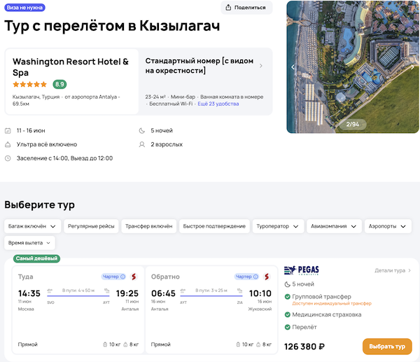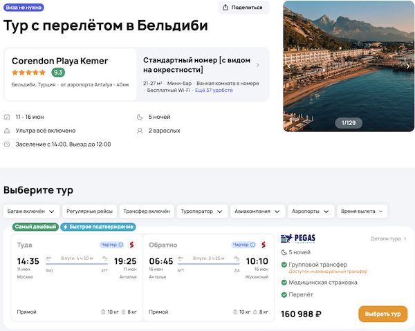 Стоимость в примерах указана за одного человека при условии поездки вдвоем, стоимость туров для одного человека можно посмотреть здесь или на страницах отелей.