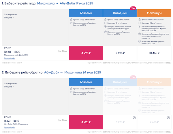 Прямые рейсы в ОАЭ (Абу-Даби и Дубай) из Махачкалы от 9.700 рублей туда-обратно.