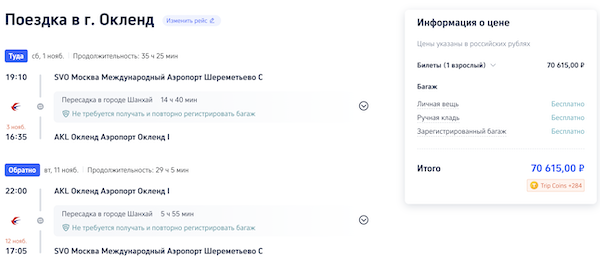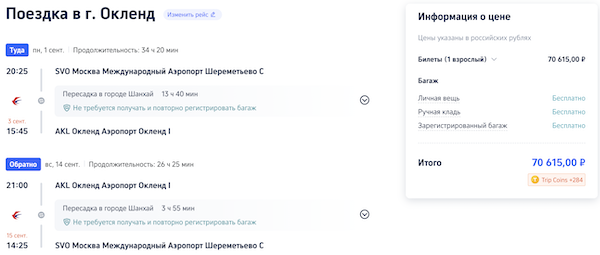 Билеты из Москвы в Новую Зеландию осенью от 70.600 рублей туда-обратно.