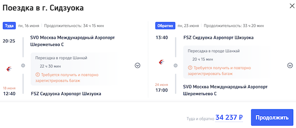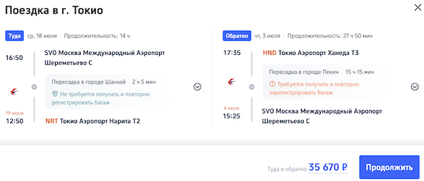 Рейсы авиакомпании China Eastern выполняются с пересадкой в Шанхае или Пекине.