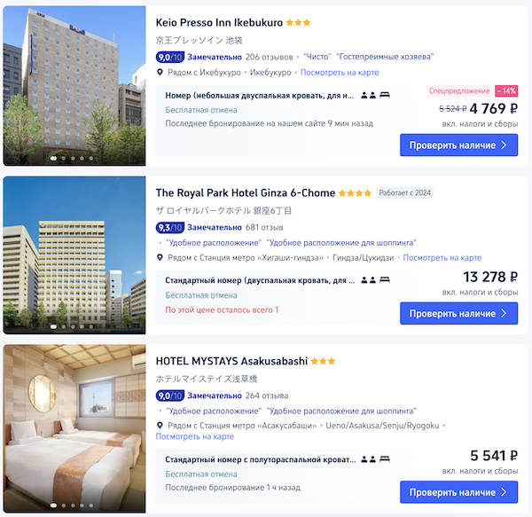 Как забронировать: перейдите по ссылкам в примерах или выберите другие даты на трип.ком.