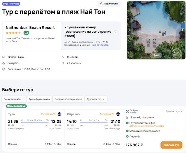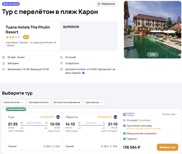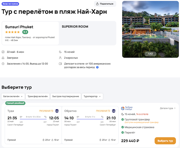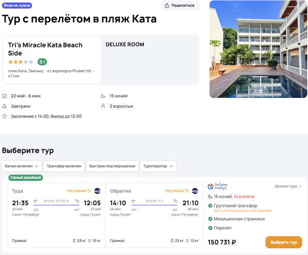 Туры из Санкт-Петербурга на Пхукет от 68.300 рублей за человека.