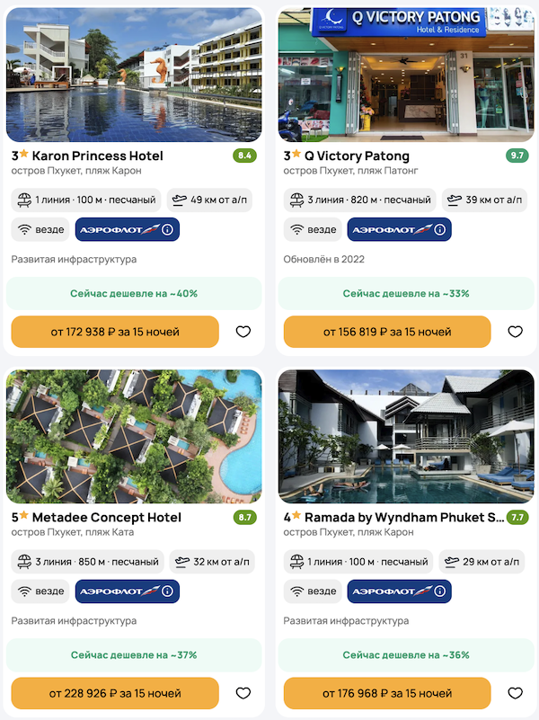 — прямой перелет на Пхукет и обратно, Аэрофлот;