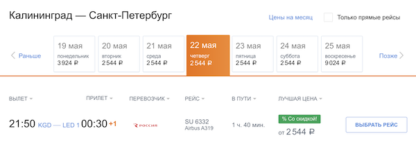 Горящие билеты из Санкт-Петербурга в Калининград: 1.000 рублей в одну сторону, 3.500 туда-обратно.