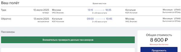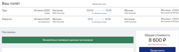 Все лето между Москвой и Когалымом 8.600 рублей туда-обратно.