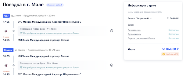 Из Москвы на Мальдивы летом от 50.100 рублей туда-обратно.