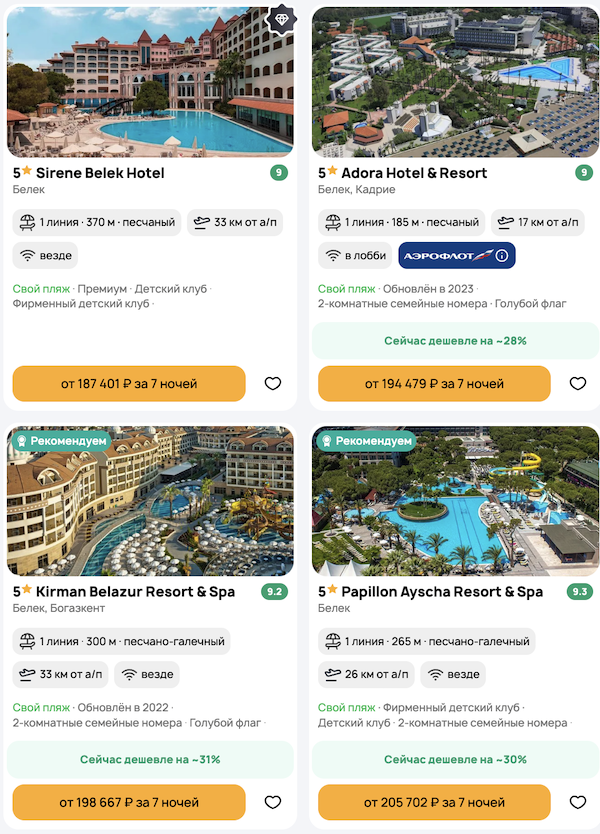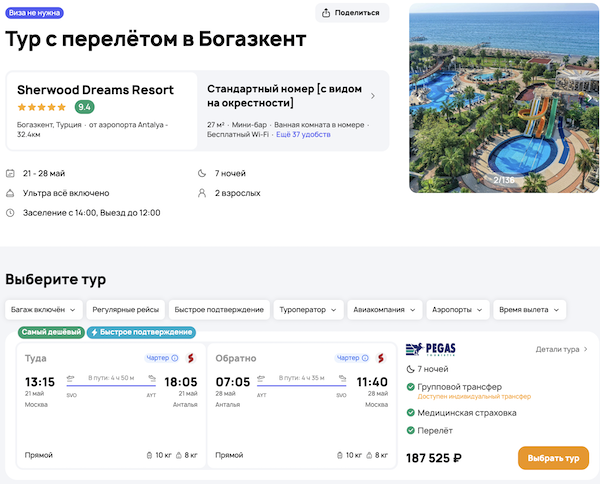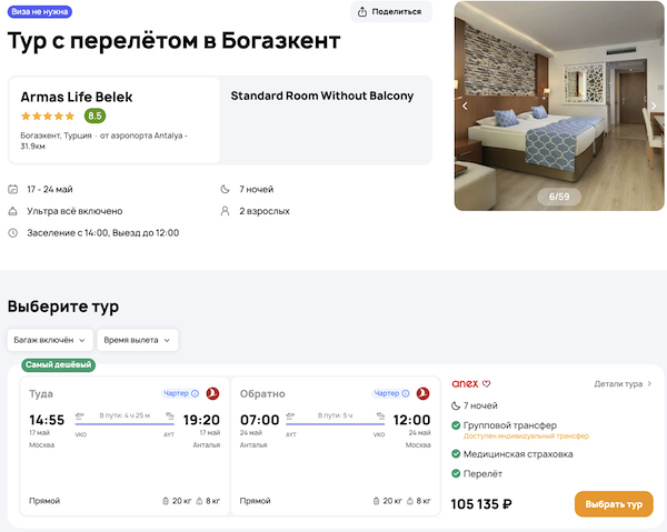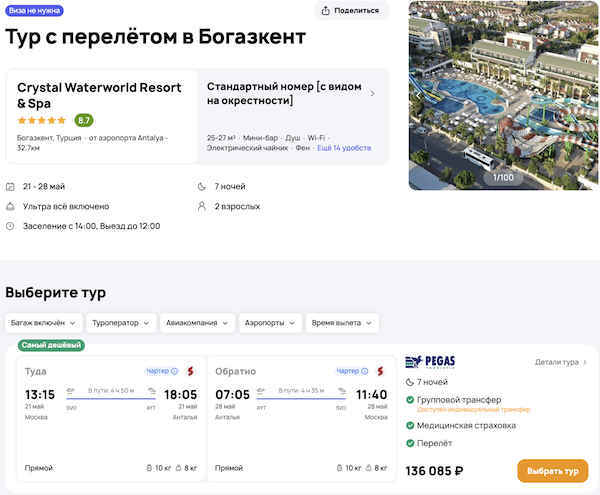 Стоимость в примерах указана за одного человека при условии поездки вдвоем, стоимость туров для одного человека можно посмотреть здесь или на страницах отелей.