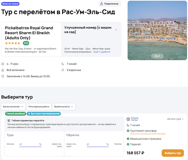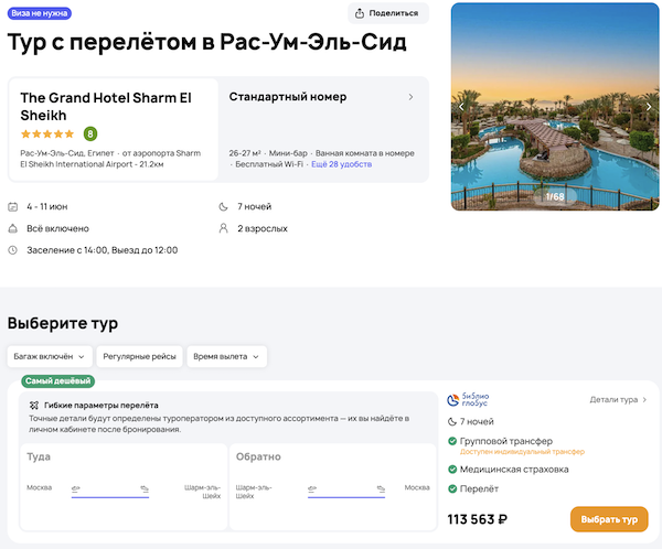 Стоимость в примерах указана за одного человека при условии поездки вдвоем, стоимость туров для одного человека можно посмотреть здесь или на страницах отелей.
