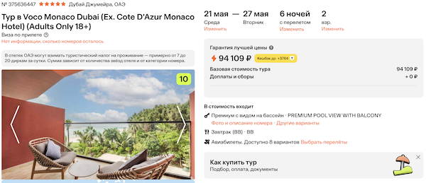 Voco Monaco Dubai 5* с завтраками 47.000 рублей за человека (94.100 рублей за двоих)