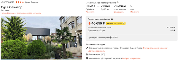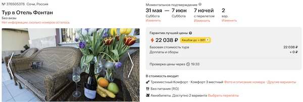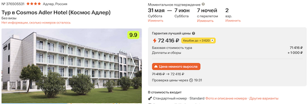 Стоимость в примерах указана за одного человека при условии поездки вдвоем, стоимость туров для одного человека можно посмотреть здесь или на страницах отелей.