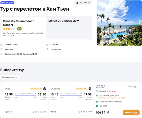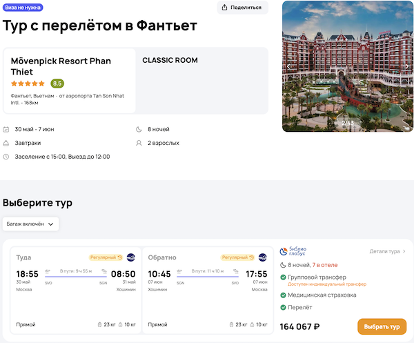 — прямой перелет в Хошимин и обратно, Аэрофлот;