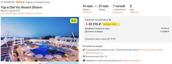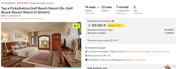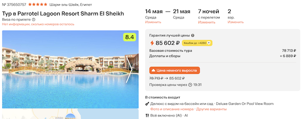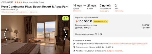 Стоимость в примерах указана за одного человека при условии поездки вдвоем, стоимость туров для одного человека можно посмотреть здесь или на страницах отелей.