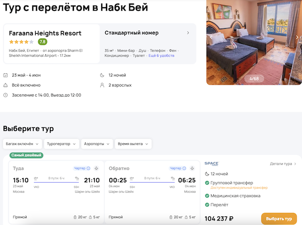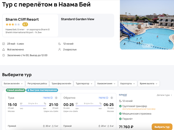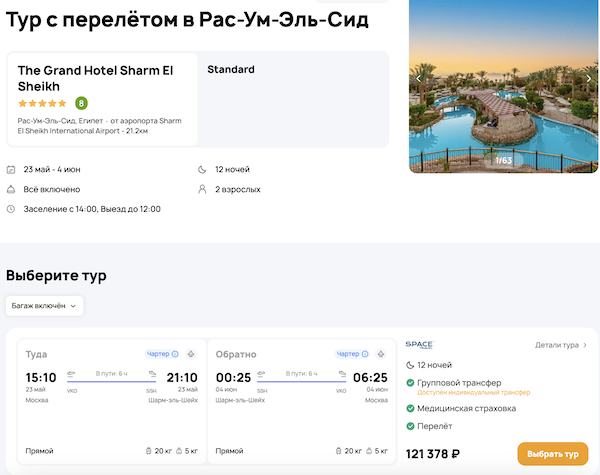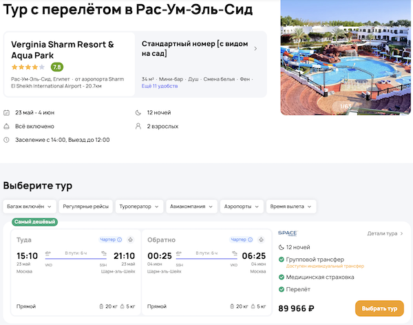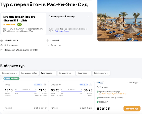 — прямой перелет в Шарм-эш-Шейх и обратно;