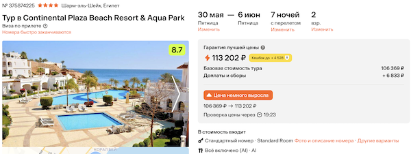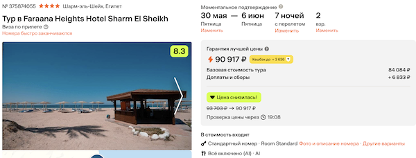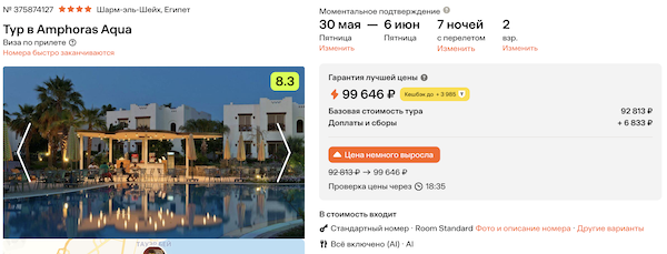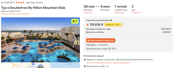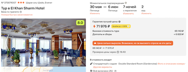 Стоимость в примерах указана за одного человека при условии поездки вдвоем, стоимость туров для одного человека можно посмотреть здесь или на страницах отелей.