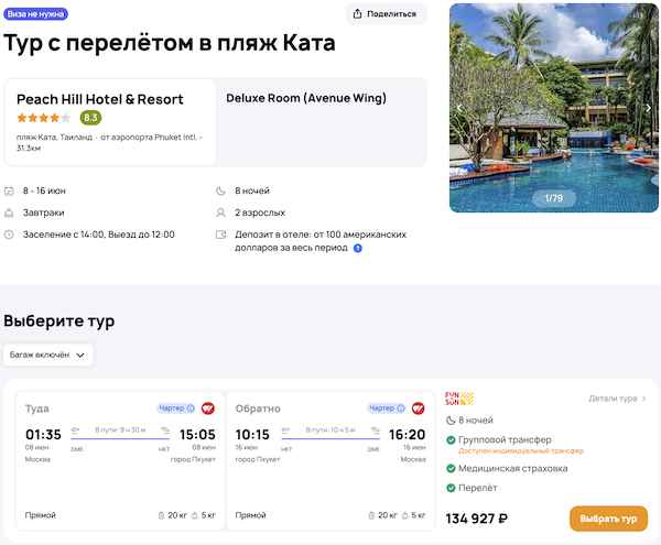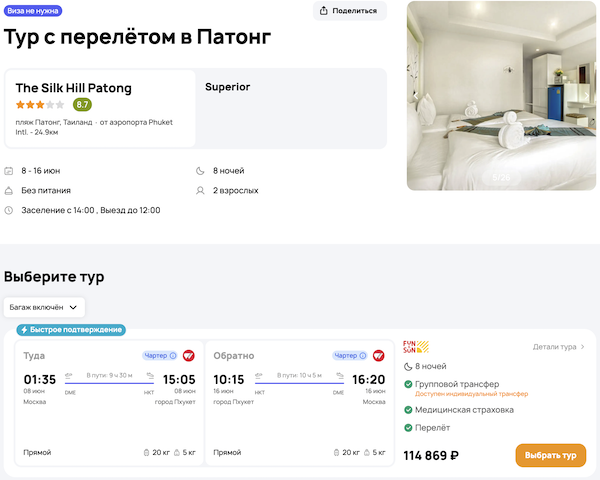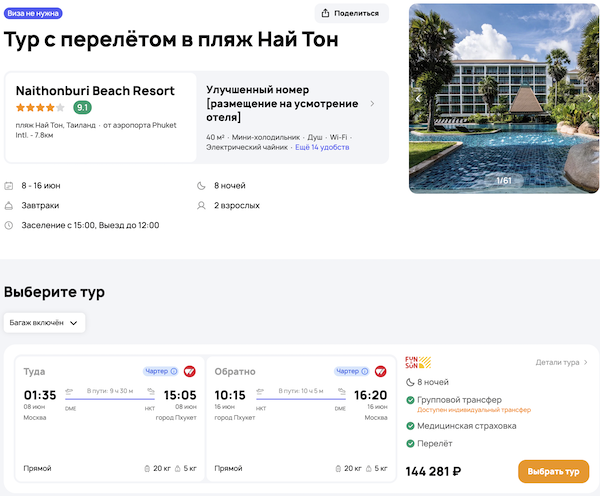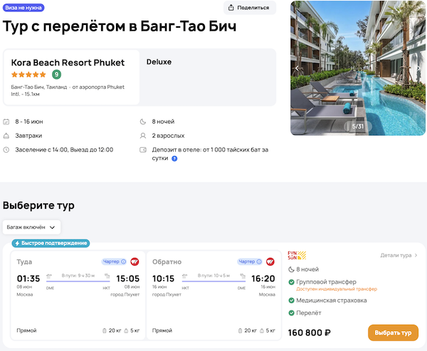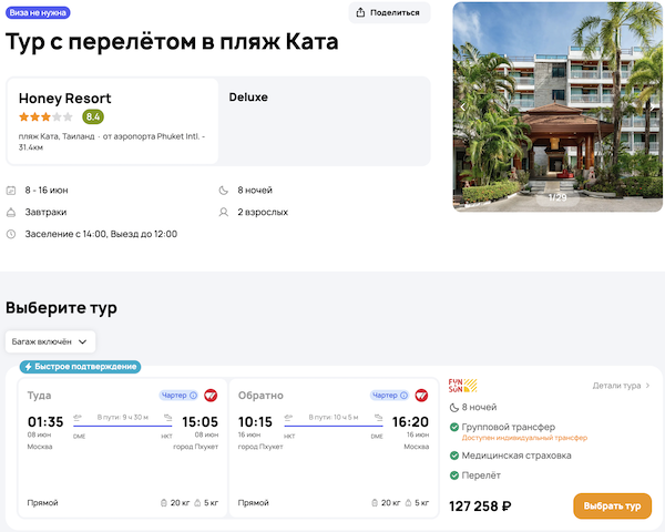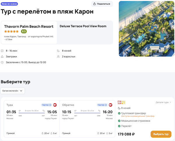— прямой перелет на Пхукет и обратно, авиакомпания RedWings;