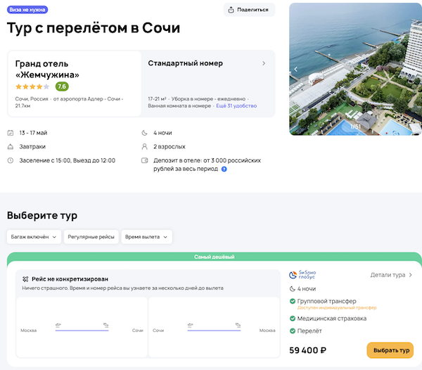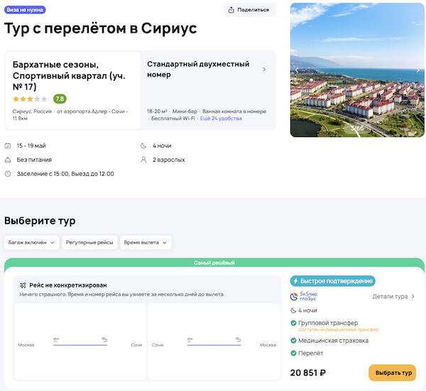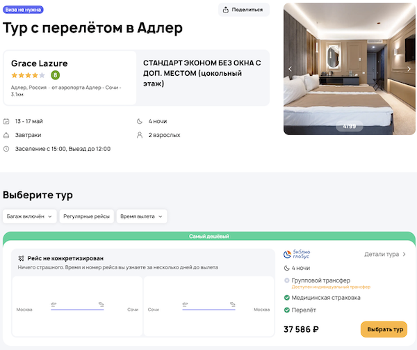 Стоимость в примерах указана за одного человека при условии поездки вдвоем, стоимость туров для одного человека можно посмотреть здесь или на страницах отелей.