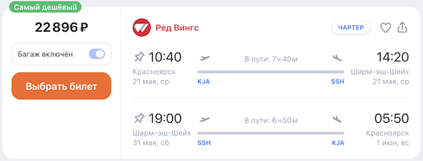 Красноярск — Шарм-эш-Шейх 21 мая