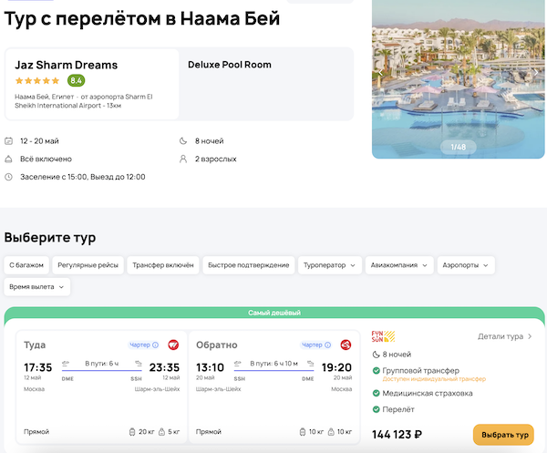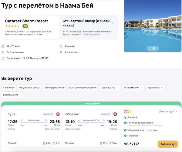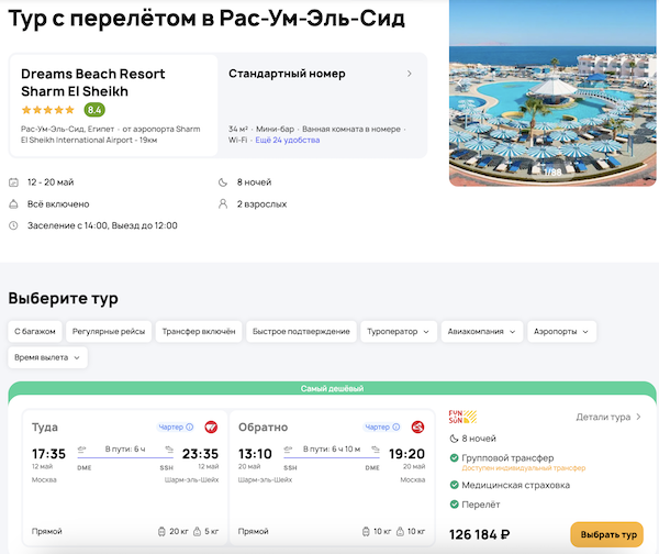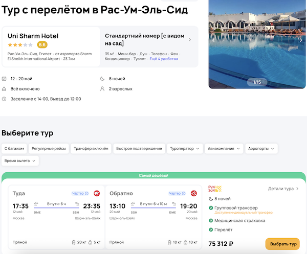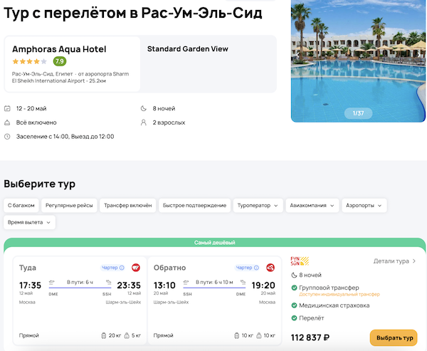 — прямой перелет в Шарм-эш-Шейх и обратно;