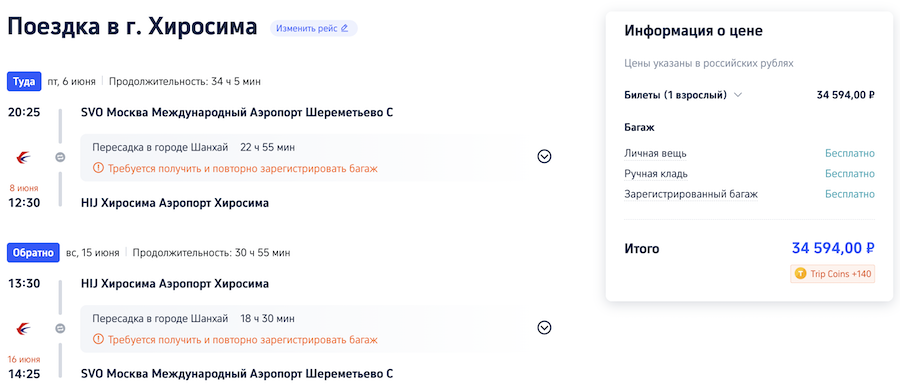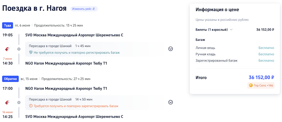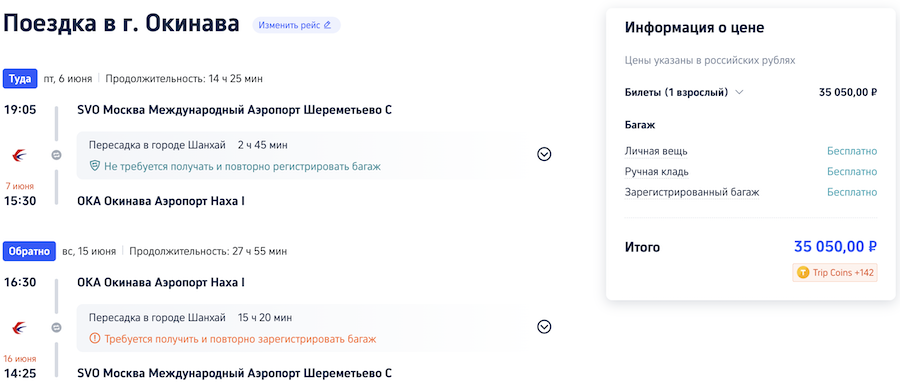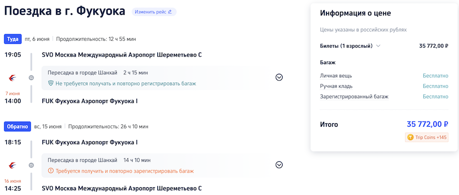 Рейсы выполняются авиакомпанией China Eastern с пересадкой в Шанхае.