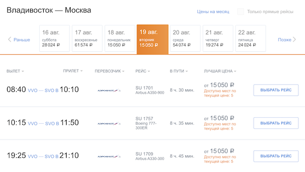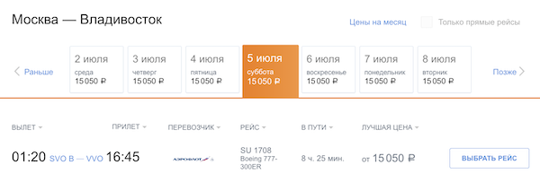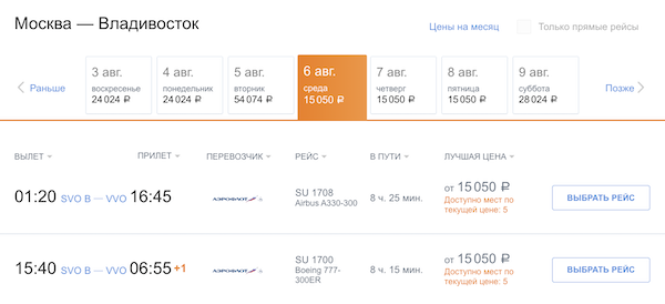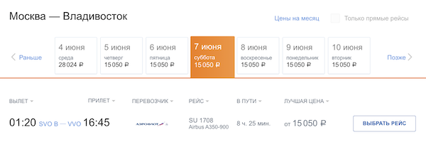Из Москвы во Владивосток летом от 28.300 рублей туда-обратно.