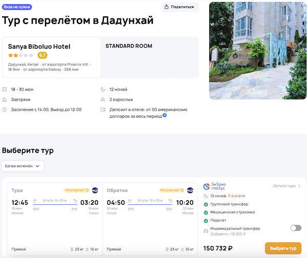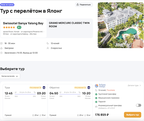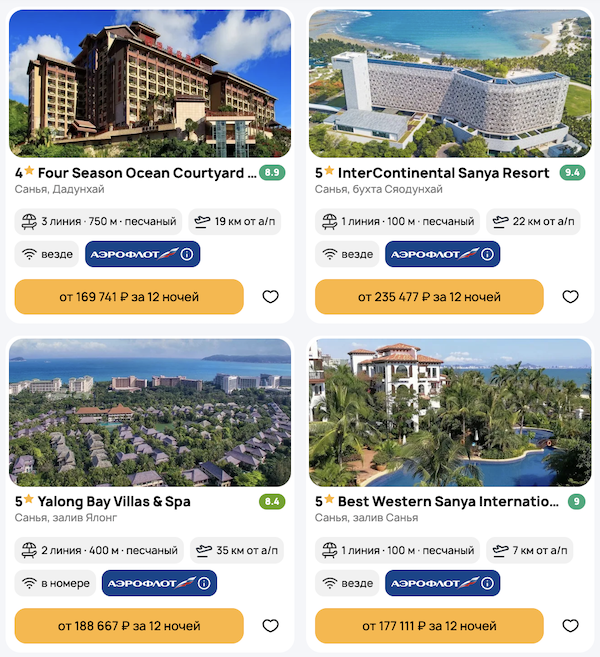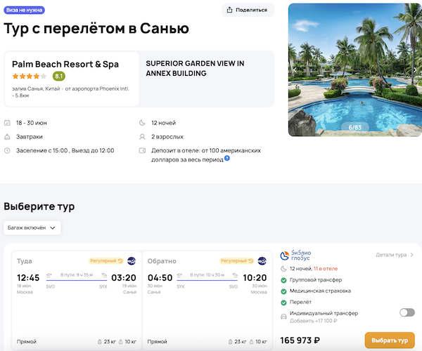 — прямой перелет в Санью и обратно, Аэрофлот;