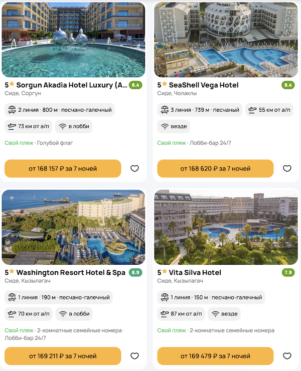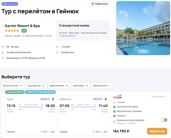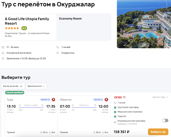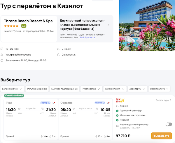 Стоимость в примерах указана за одного человека при условии поездки вдвоем, стоимость туров для одного человека можно посмотреть здесь или на страницах отелей.