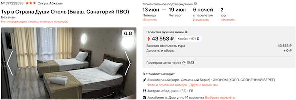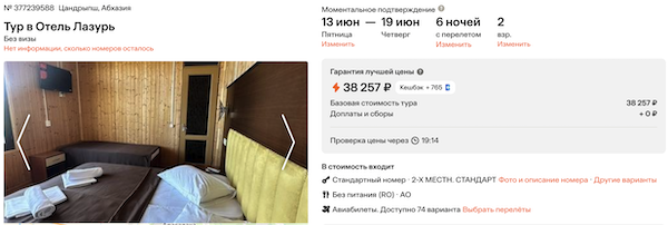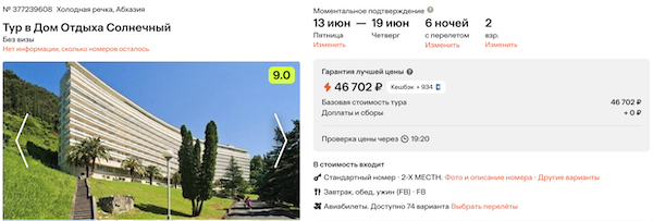 Горящие туры из Москвы в Абхазию от 19.100 рублей за человека.