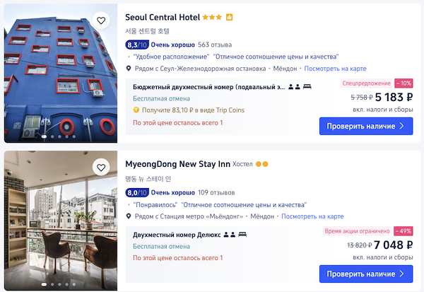 Отели с оплатой российской картой на трип.ком