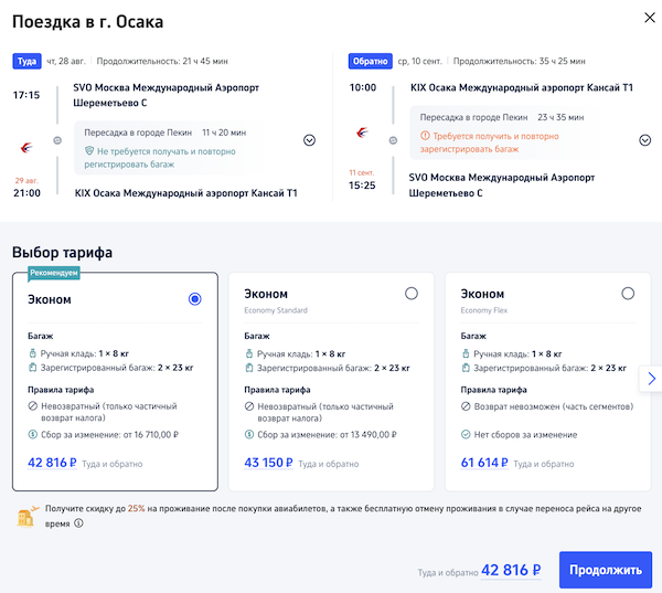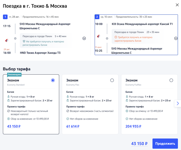 Рейсы авиакомпании China Eastern выполняются с пересадкой в Пекине.