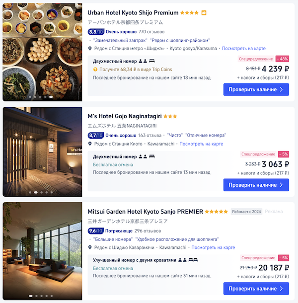Как забронировать: перейдите по ссылкам в примерах или выберите другие даты на трип.ком