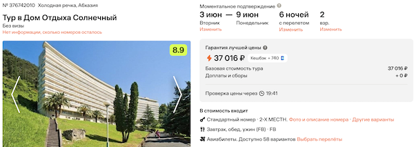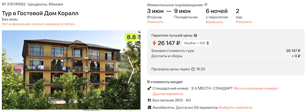 Горящие туры из Москвы в Абхазию от 11.400 рублей за человека.