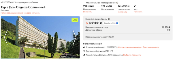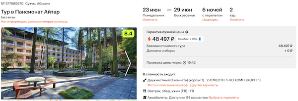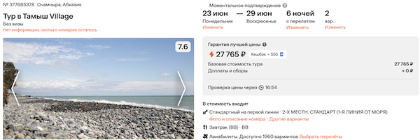 Горящие туры из Москвы в Абхазию от 13.900 рублей за человека.