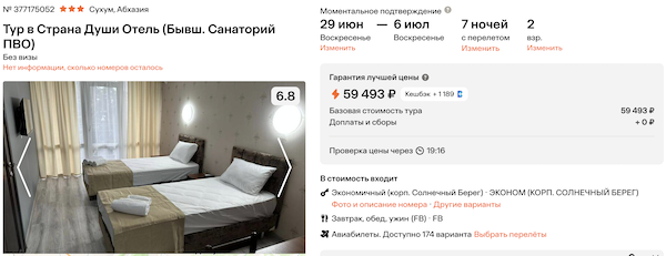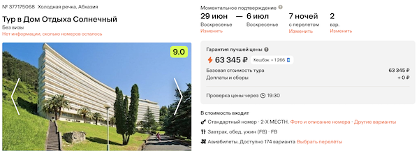 Туры из Москвы в Абхазию на неделю в начале июля от 24.700 рублей за человека.