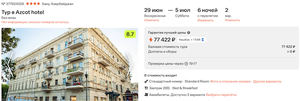 — прямой перелет в Баку и обратно, авиакомпания Azal;