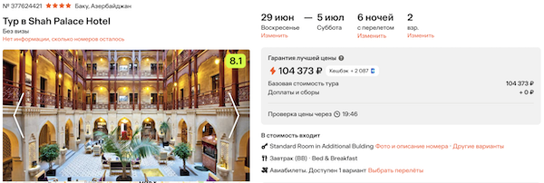 Shah Palace Hotel 4* с завтраками 52.200 рублей за человека (104.400 рублей за двоих)