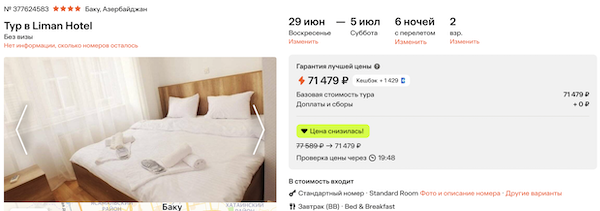 Стоимость в примерах указана за одного человека при условии поездки вдвоем, стоимость туров для одного человека можно посмотреть здесь или на страницах отелей.
