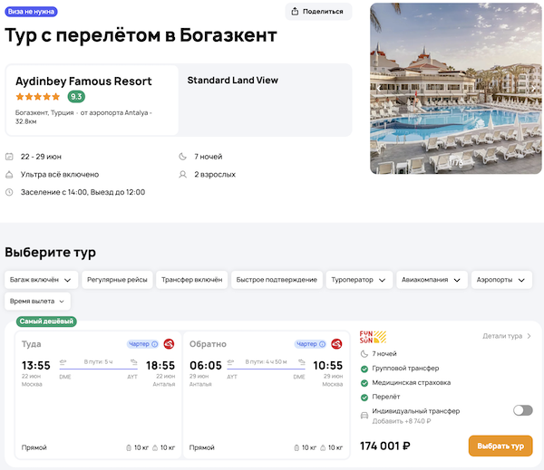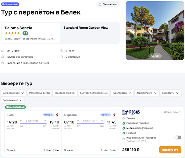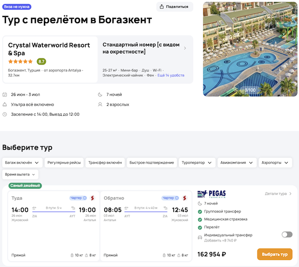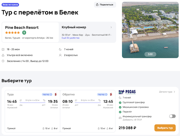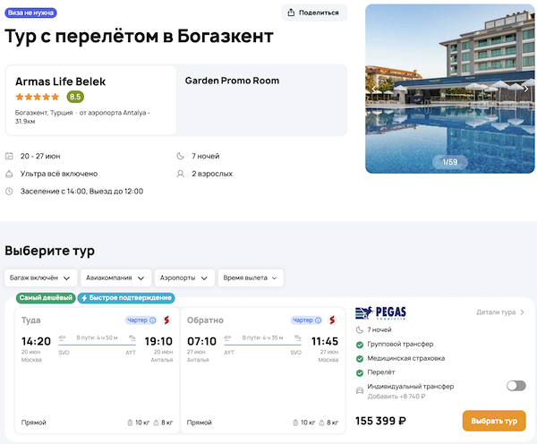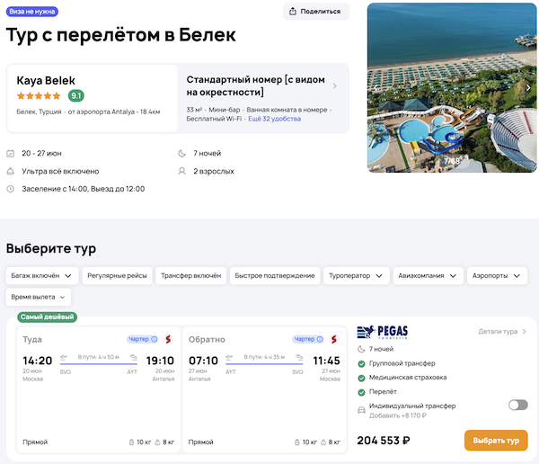 — прямой перелет в Анталью и обратно;