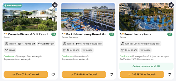 Aydinbey Famous Resort 87.000 рублей за человека (174.000 рублей за двоих)