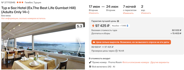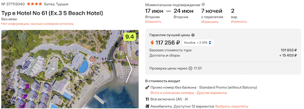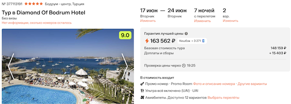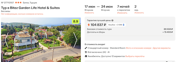 Стоимость в примерах указана за одного человека при условии поездки вдвоем, стоимость туров для одного человека можно посмотреть здесь или на страницах отелей.