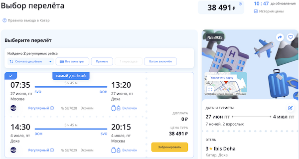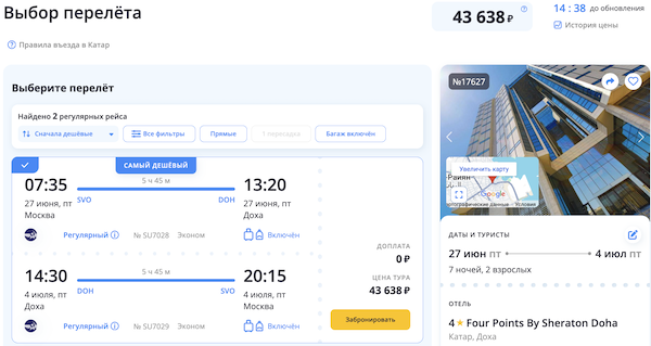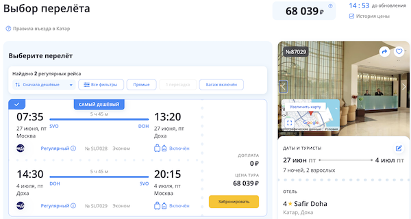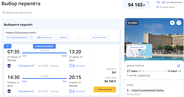 — прямой перелет в Доху и обратно, Аэрофлот;