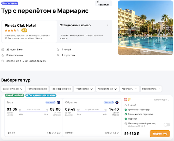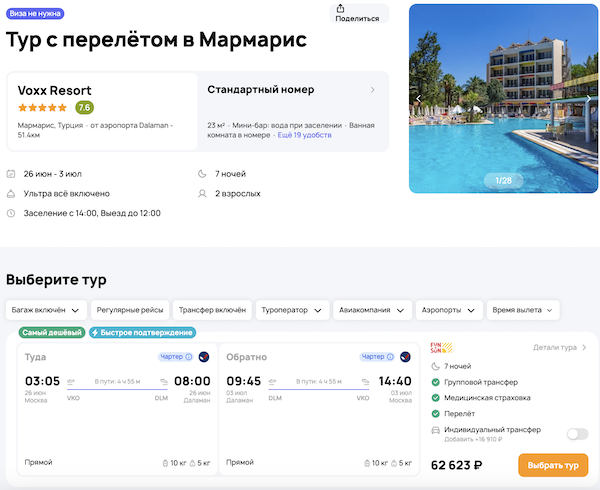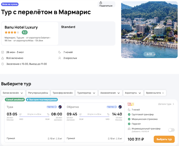 — прямой перелет в Даламан и обратно, AzurAir;