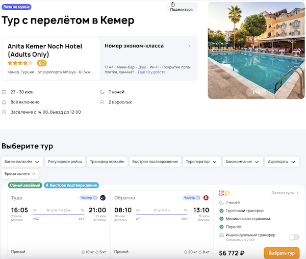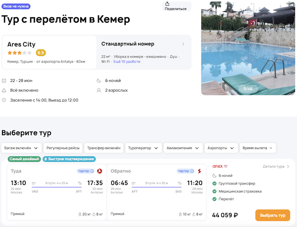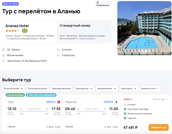 — прямой перелет в Анталью и обратно;