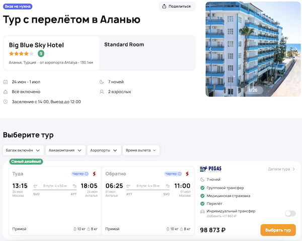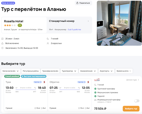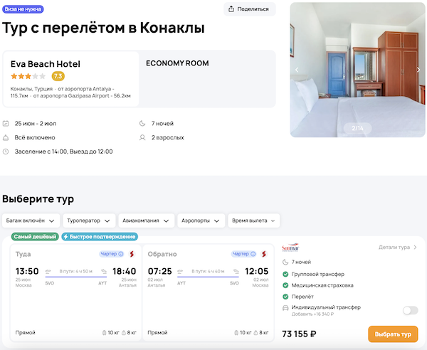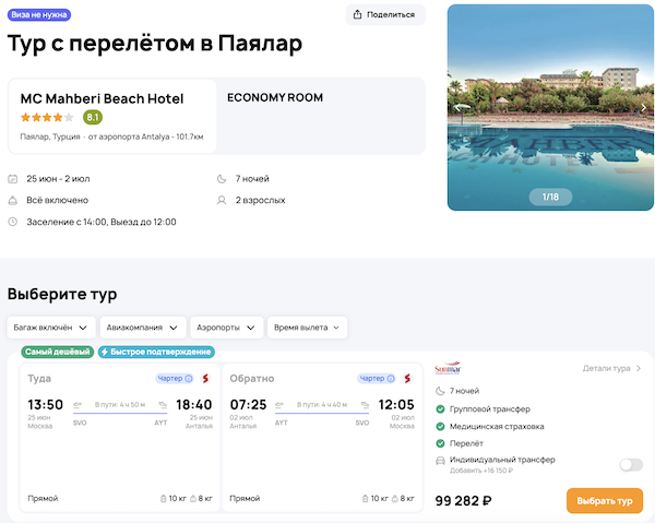Стоимость в примерах указана за одного человека при условии поездки вдвоем, стоимость туров для одного человека можно посмотреть здесь или на страницах отелей.