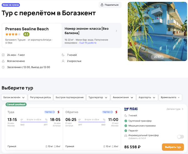 Даты поездки: с 25 июня по 2 июля (или соседние даты).