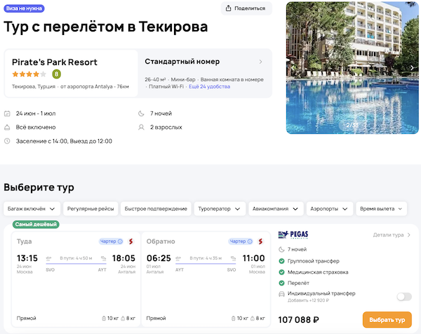 Pirate’s Park Resort 4* 53.500 рублей за человека (107.100 рублей за двоих)