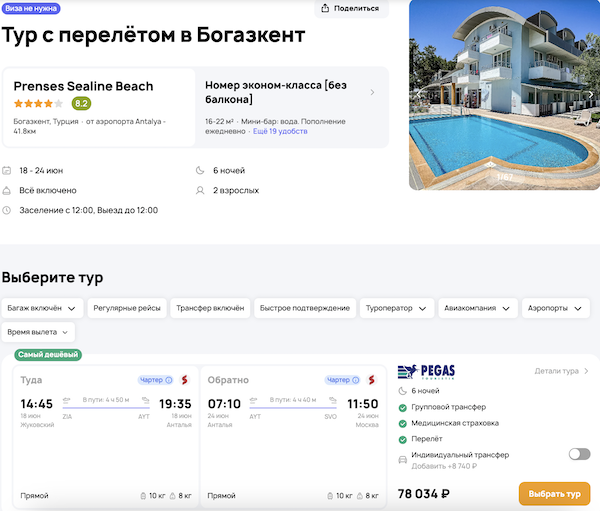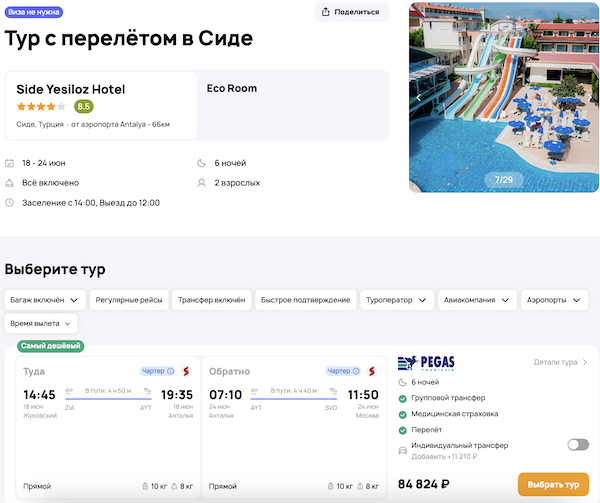 — прямой перелет в Анталью и обратно, авиакомпания Southwind;
