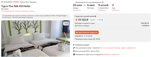 Стоимость в примерах указана за одного человека при условии поездки вдвоем, стоимость туров для одного человека можно посмотреть здесь или на страницах отелей.