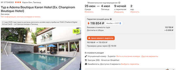 Adema Boutique Karon Hotel 3* с завтраками 59.400 рублей за человека (118.900 рублей за двоих)